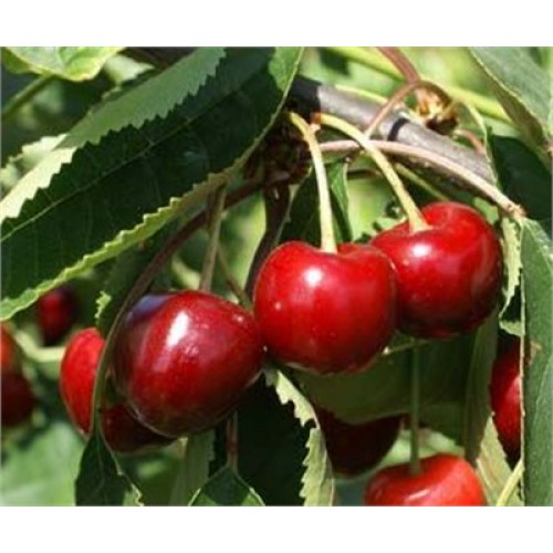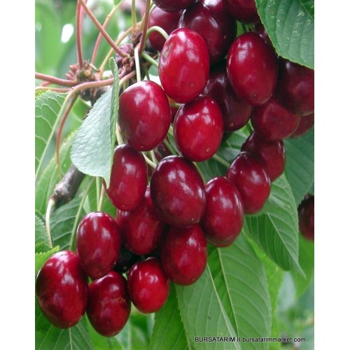 Meyveleri iri, kalp şeklinde ve parlak kırmızı renklidir.
