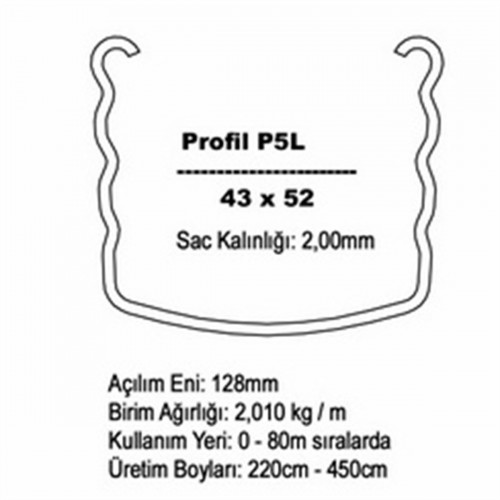 P5L-2 profili 2mm sac kalınlığındadır, 80 metreden kısa sıralar için ideal baş direk çözümüdür: